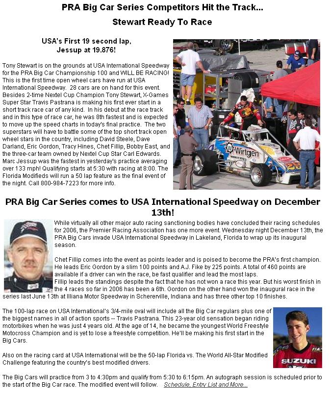 my home track, kart speeds 120mph stock cars 130-175mph 3/4 mile high bank bad ass short track Cup Teams test during the winter... only track without snow :)